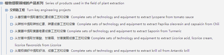 Continuous Counter-flow Ultrasonic Extraction Complete Machinery, as core products, has agglomerated of 15 patents and know-how technologies, such as ultrasonic extraction, dynamic counter-flow extraction, continuous filtration with automatic outlet of cake, low-temperature evaporation concentration, high efficient recovery of organic solvent, specific mechanic seal etc. The machinery realizes continuous production and automatic control under seal condition, and realizing fast extraction production under low and normal temperature through the whole process. It is wildly used for extracting and producing Chinese Traditional Medicine, natural colors, flavors and fragrances, food additives, health ...